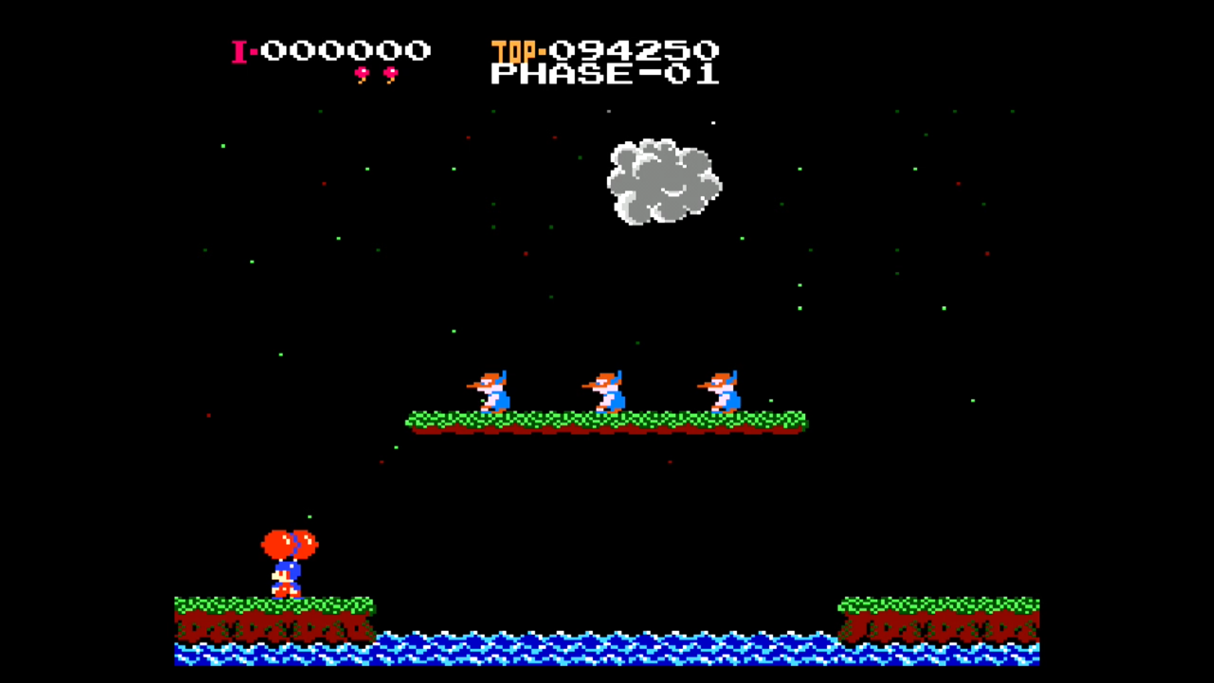 ・敵の身体にプレイヤーの風船が触れると、2個のうち1個が割れて上昇力が弱くなります。風船を2個とも割られると、プレイヤーは水中に落下して1回ミスとなります。